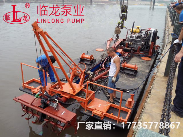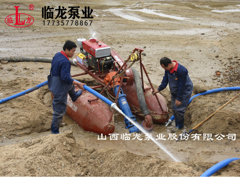 射吸式清淤机组是由两只浮筒进行固定。将清淤泵固定在浮体上。利用电机或者柴油机驱动吸泥泵进行清淤。(柴油机需配临龙的变速箱)再配合高压泵冲击的原理将淤泥进行稀释。再用吸泥泵将淤泥抽走。形成集挖掘、输送、填充等多道工序于一体的作业方式。其基本工作原理为:通过高压泵系统对水加压后,经水枪喷射对输送物(泥、沙、煤粉、矿石粉、粒等)进行冲击搅拌,形成混合介质液,再由吸泥泵将其输送、堆集在指定位置。